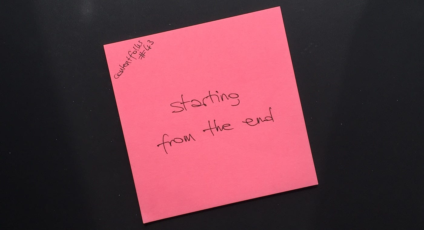 Thanks for sharing this strategy. It seems kinda counterintuitive to start at the end but I can see how it would make you think differently about your projects.