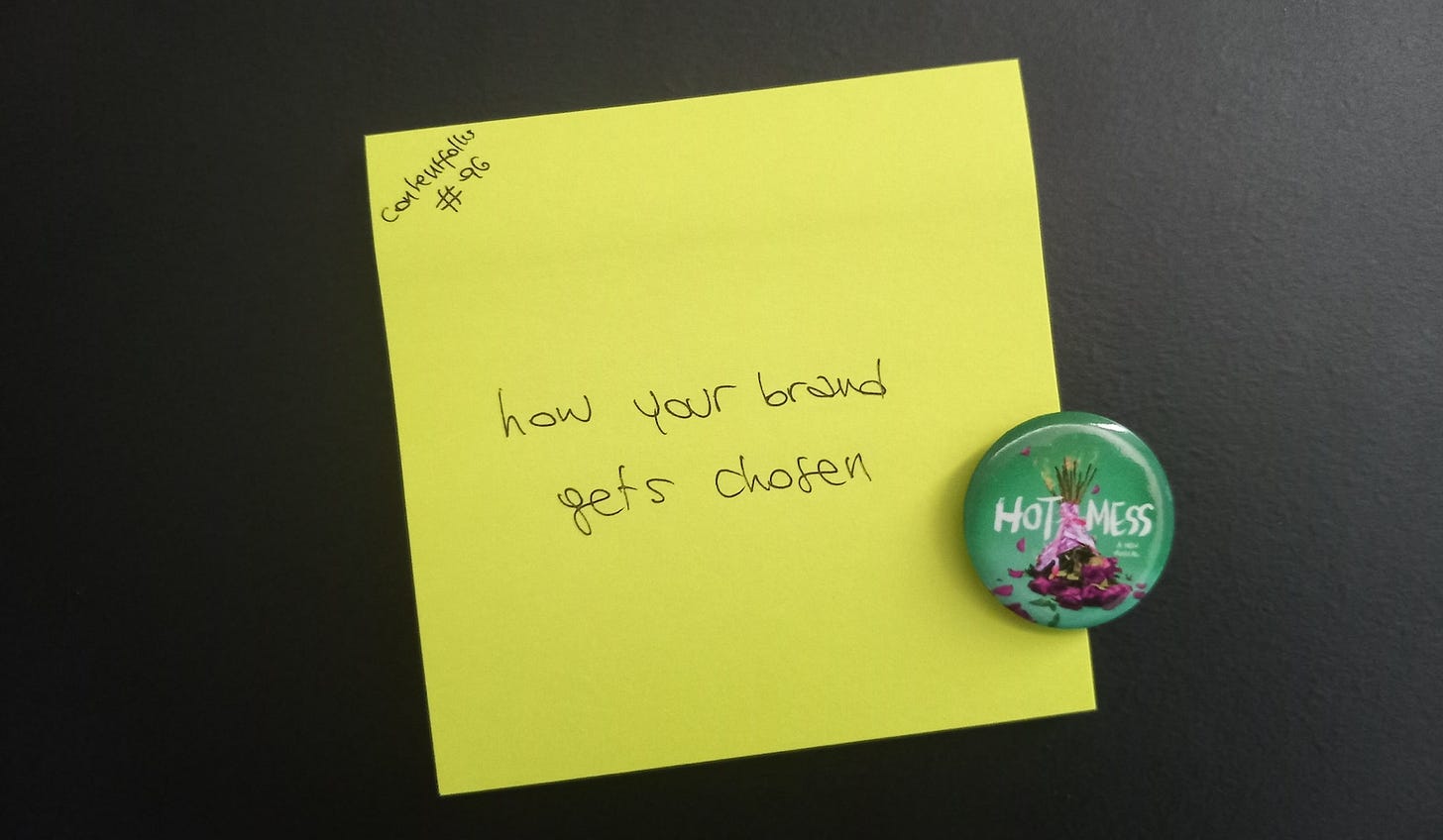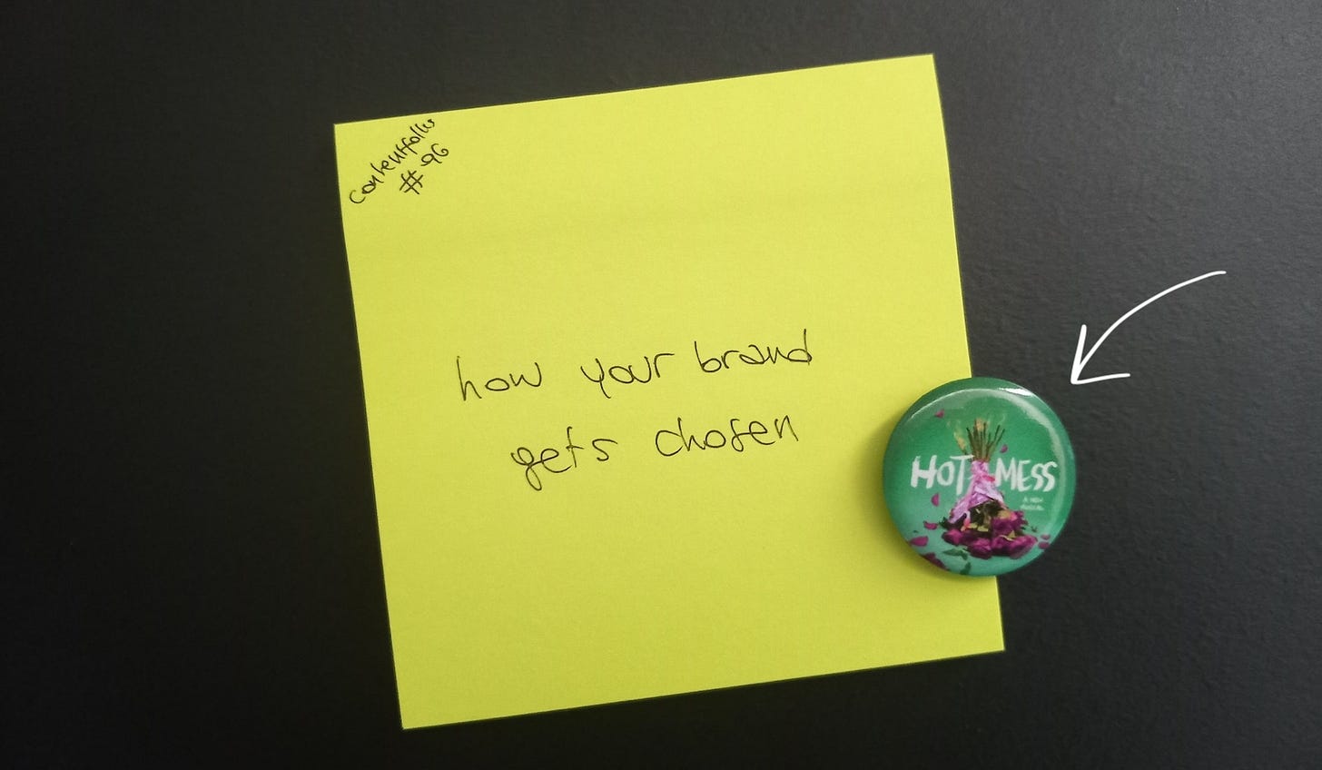 Distinctive brand assets and messaging work by accumulation: they reduce cognitive load and give us handy shortcuts when we need themâand this is the story of how, with a free hour, you scan all the options, recognise âthe green musical about the doomed love affair between Earth and humanity,â and we get tickets to see Hot Mess.